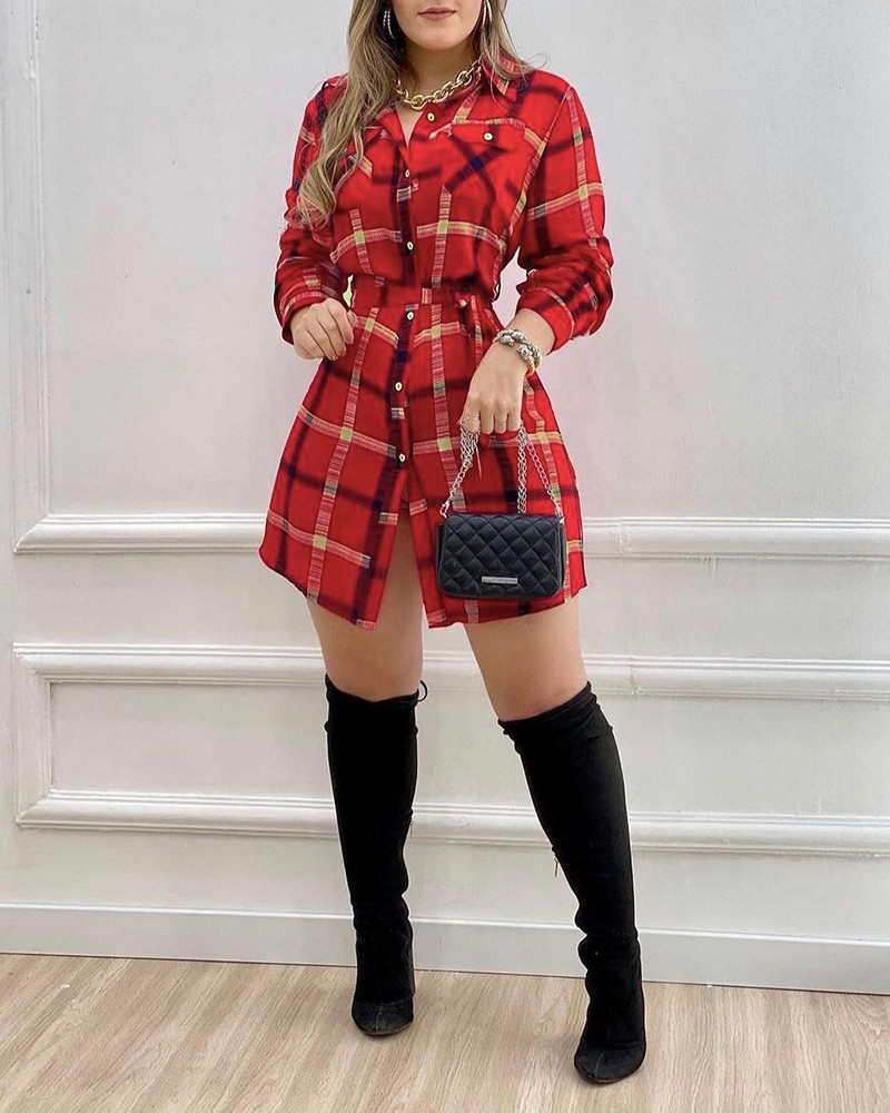 V-Neck Long-Sleeved Temperament Solid Color High-Waist Dress
