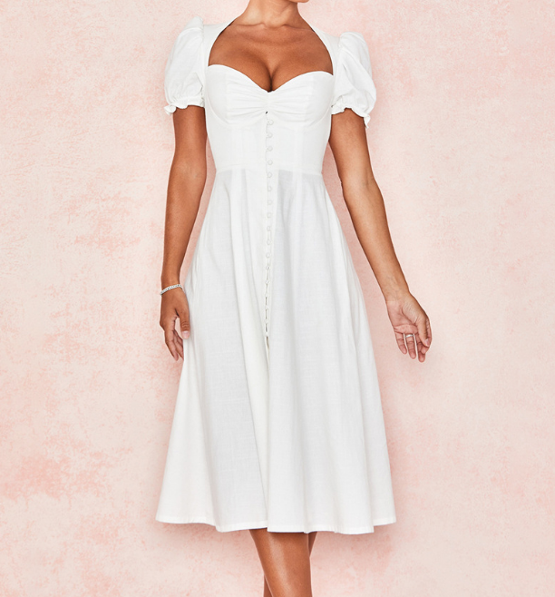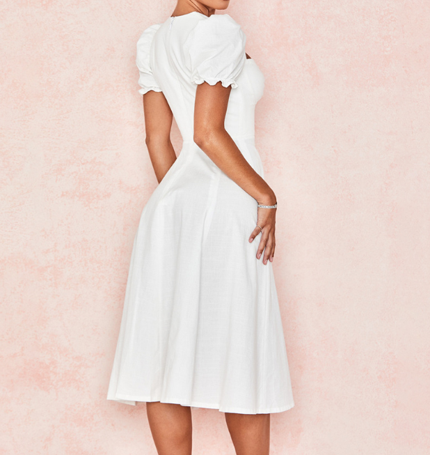 Women'S Solid Color Short-Sleeved Split Princess Dress