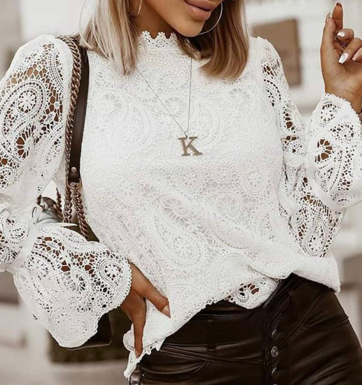 Material: Lace Gender: Women Item Type:Tops Sleeve Length:Long Sleeve Color: White, Black Size: S,M,L,XL