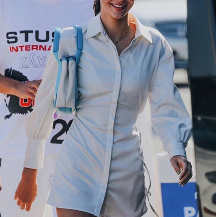 Slim Women'S Stand-Up Collar Single Breasted Dress