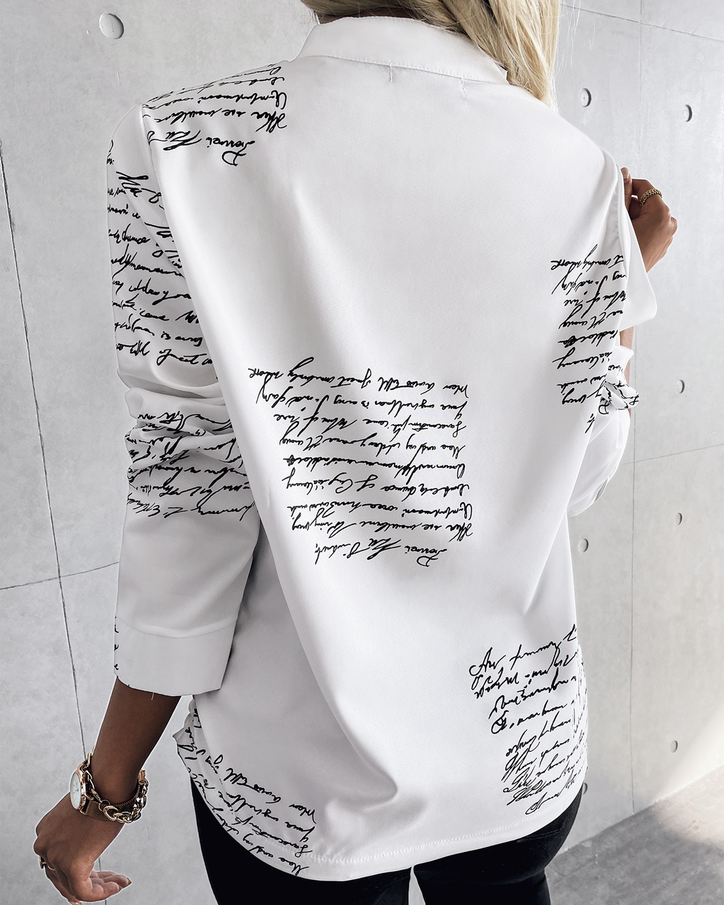Fashion Printed Letter V-Neck Button Long-Sleeved Shirt Top