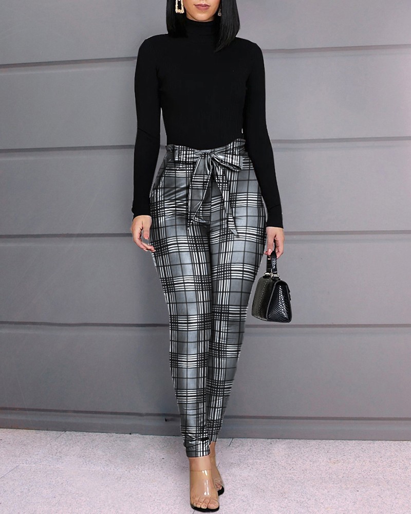 Women'S Black And White Check Tight Trousers