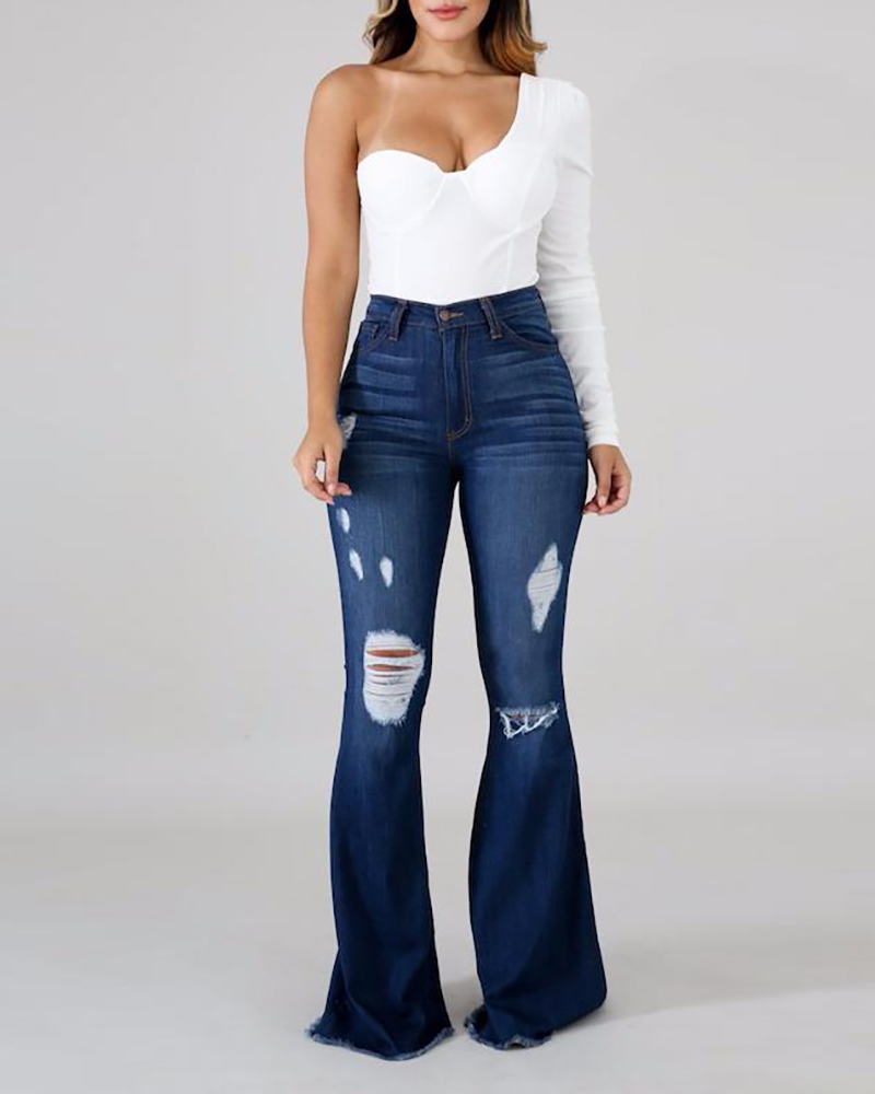 Slim Fashion Ripped Denim Stretch Flared Pants