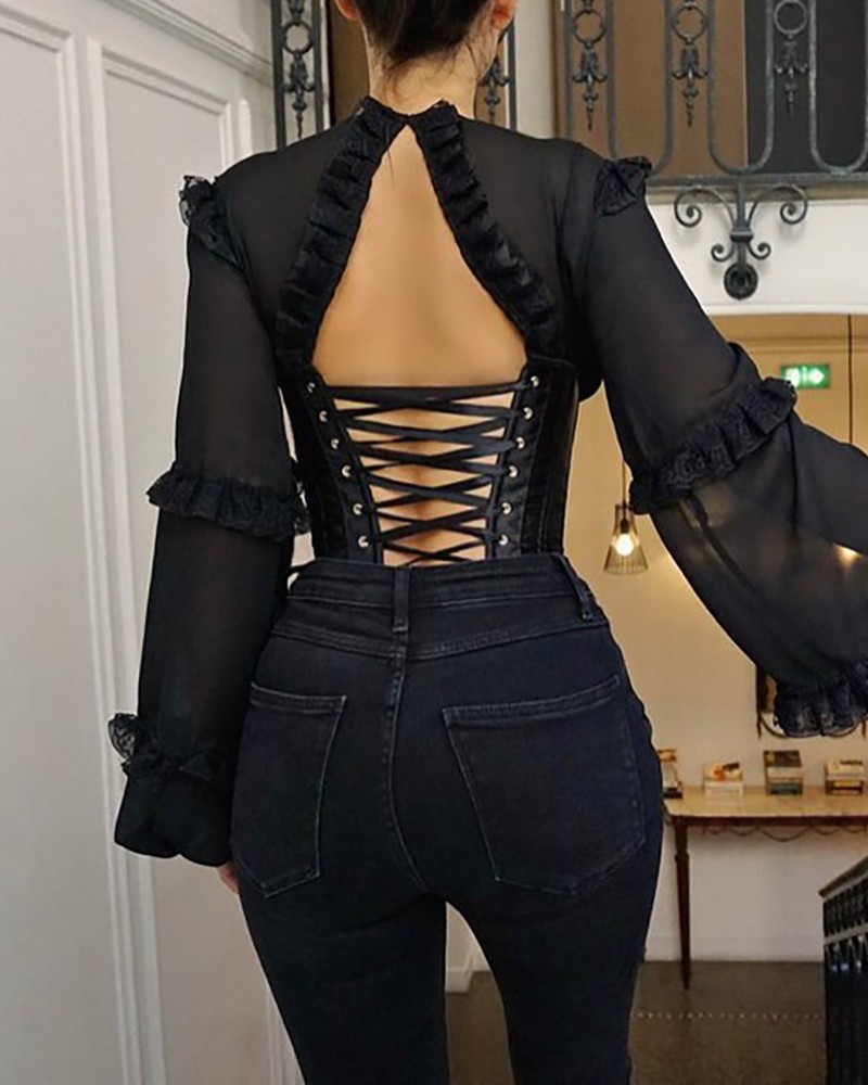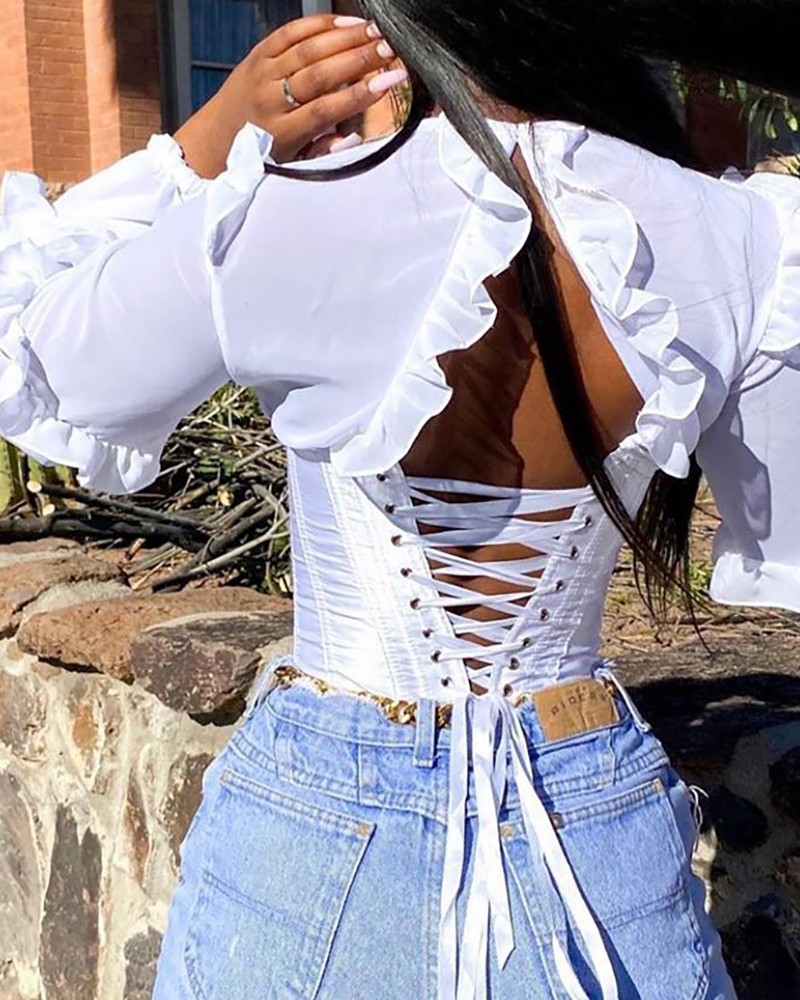 Material: Polyester Gender: Women Item Type:Tops Sleeve Length:Long Sleeve Color: White, Black Size: S, M, L, XL
