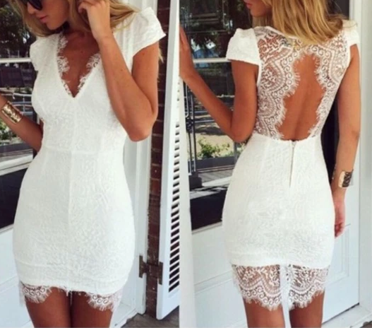Lace Sexy V-Neck Short Sleeve Dress