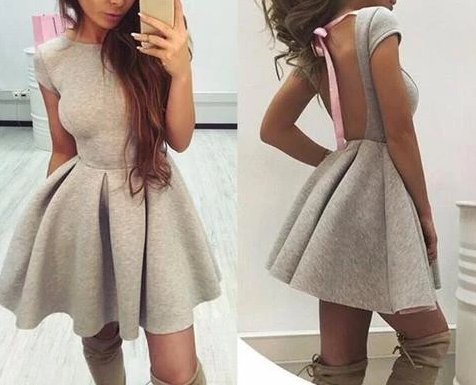 Fabric: Polyester Gender: Women Item Type:Dress Color: Gray, Black Sleeve Length:Short Sleeve Size: S, M, L, XL, XXL