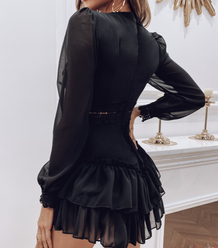 Women Solid Color Stitching Lace Flouncing Dress
