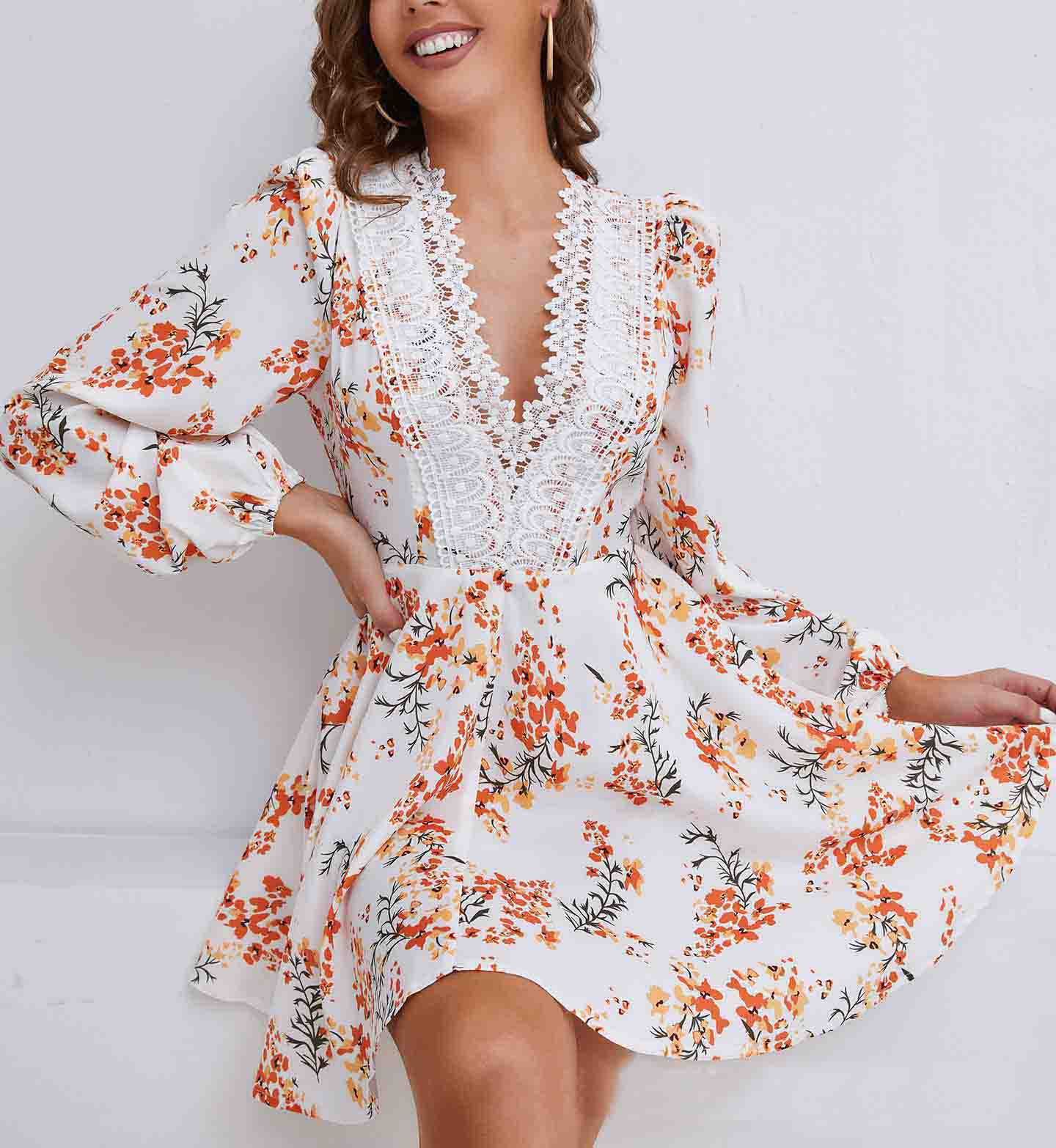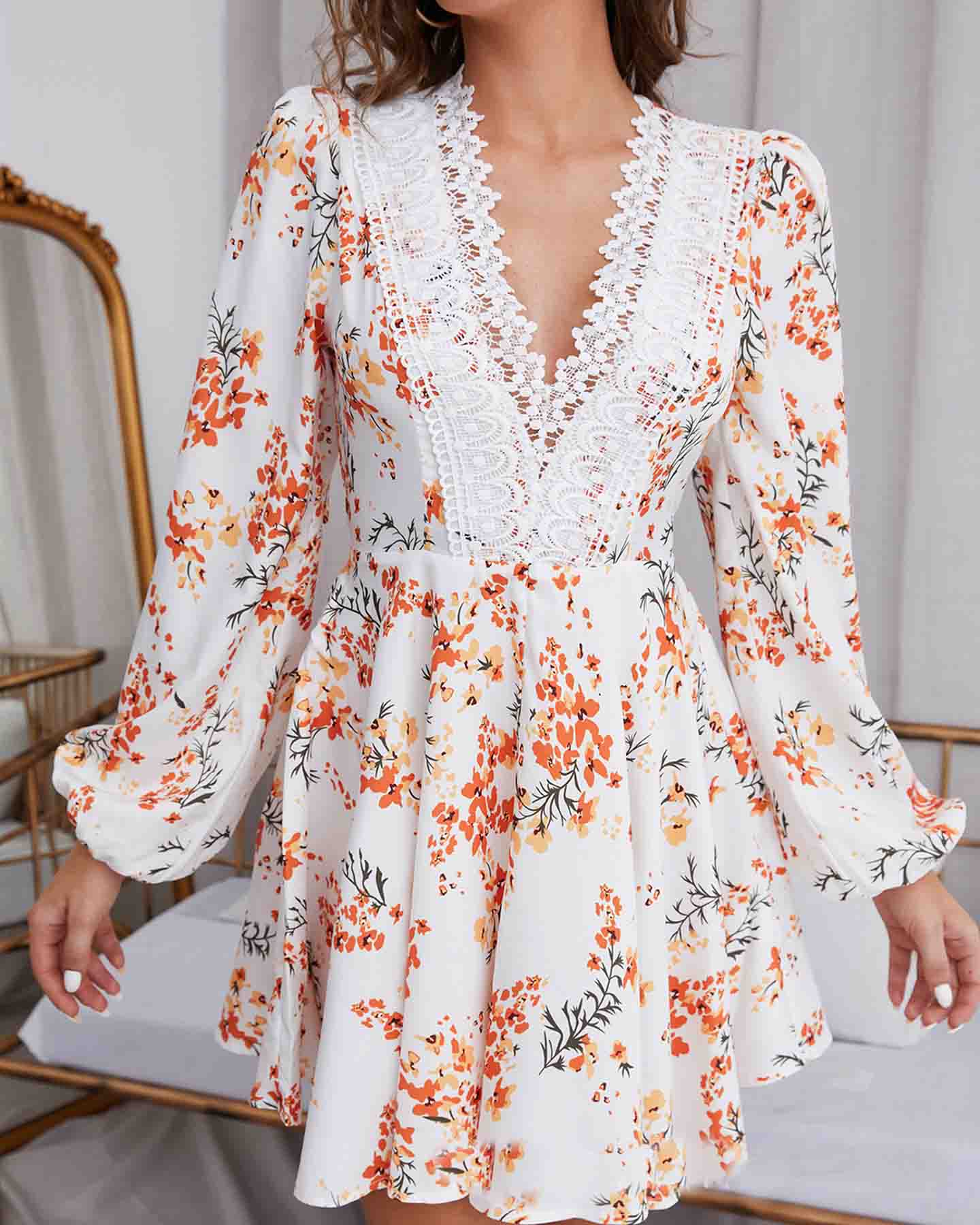 Women Lace Stitching Print Dress