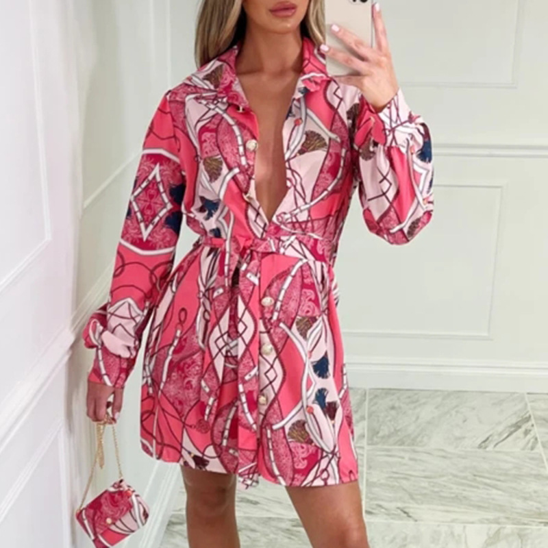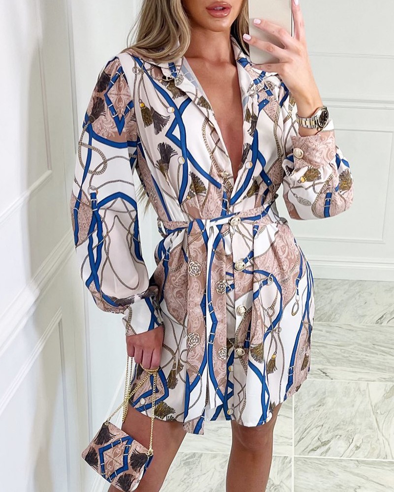 Fashion Printed High Waist Long Sleeve Dress