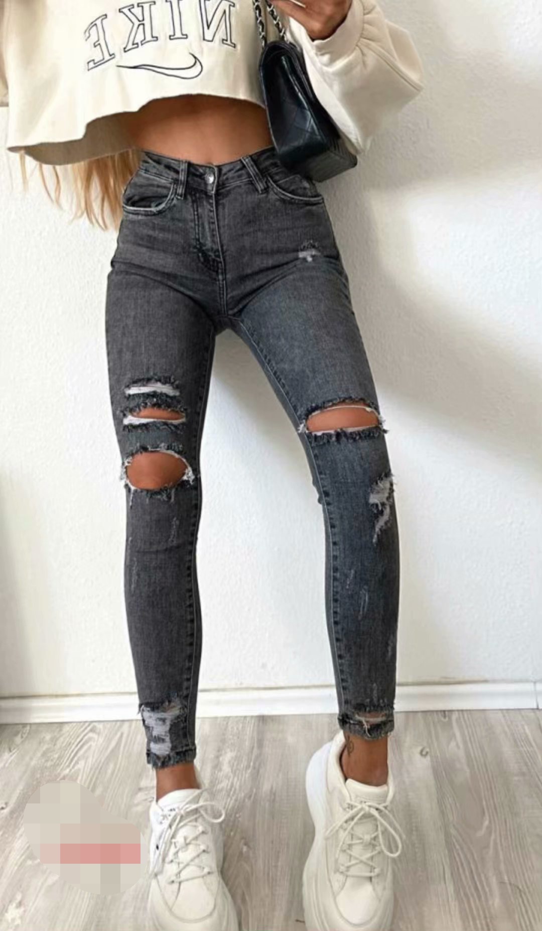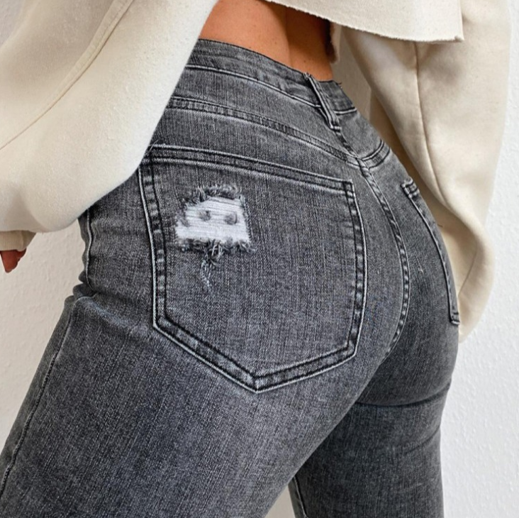 Sexy High Waist Hole Elasticity Denim Pants