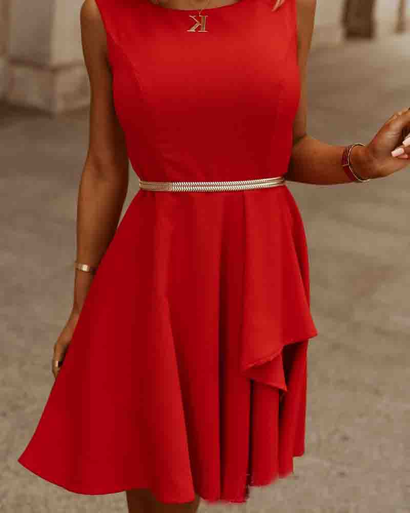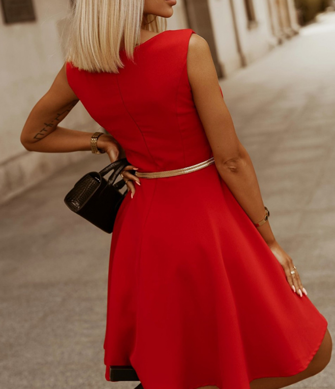 Round Neck Red Sleeveless Dress