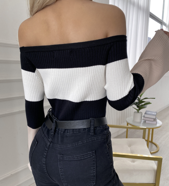Women'S Striped Long-Sleeved One-Shoulder Top