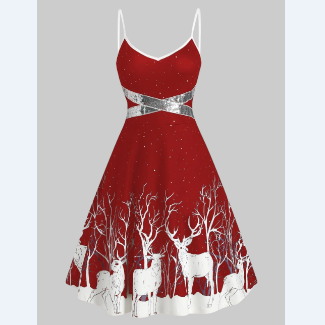 Material: Polyester Gender: Women Item Type: Dress Sleeve Length: Sleeveless Color: Red, Green, Black Size: S,M,L,XL,XXL
