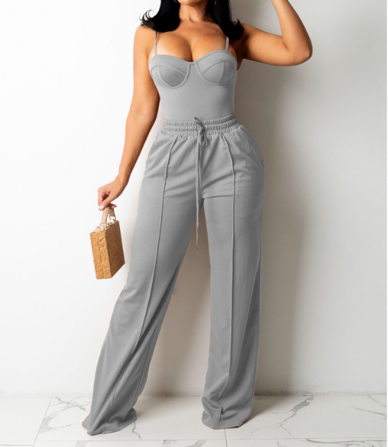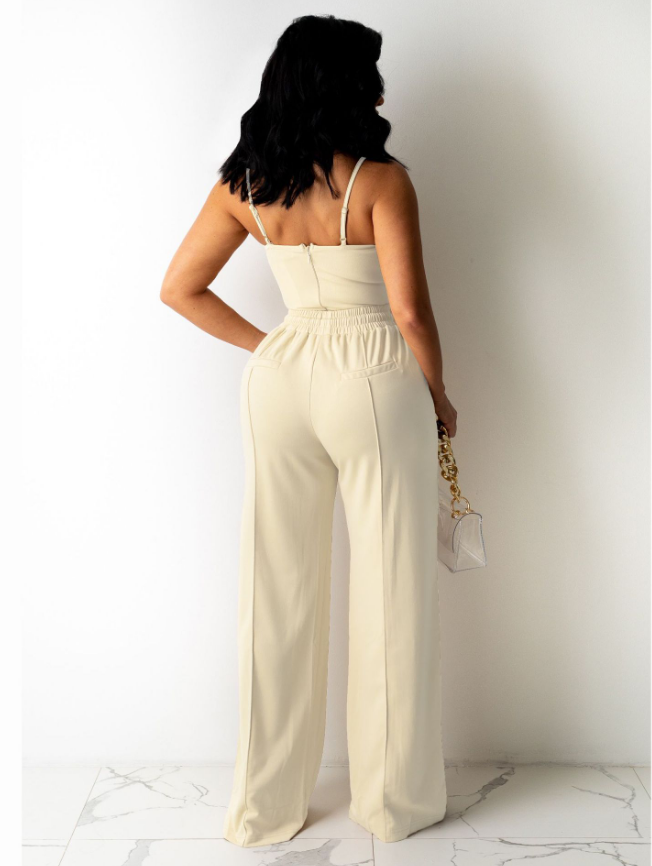 Solid Color Fashion Women'S Sleeveless Sling Vest Two-Piece Set