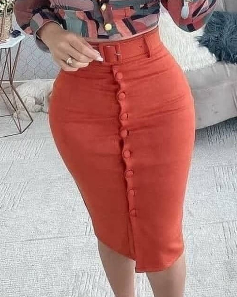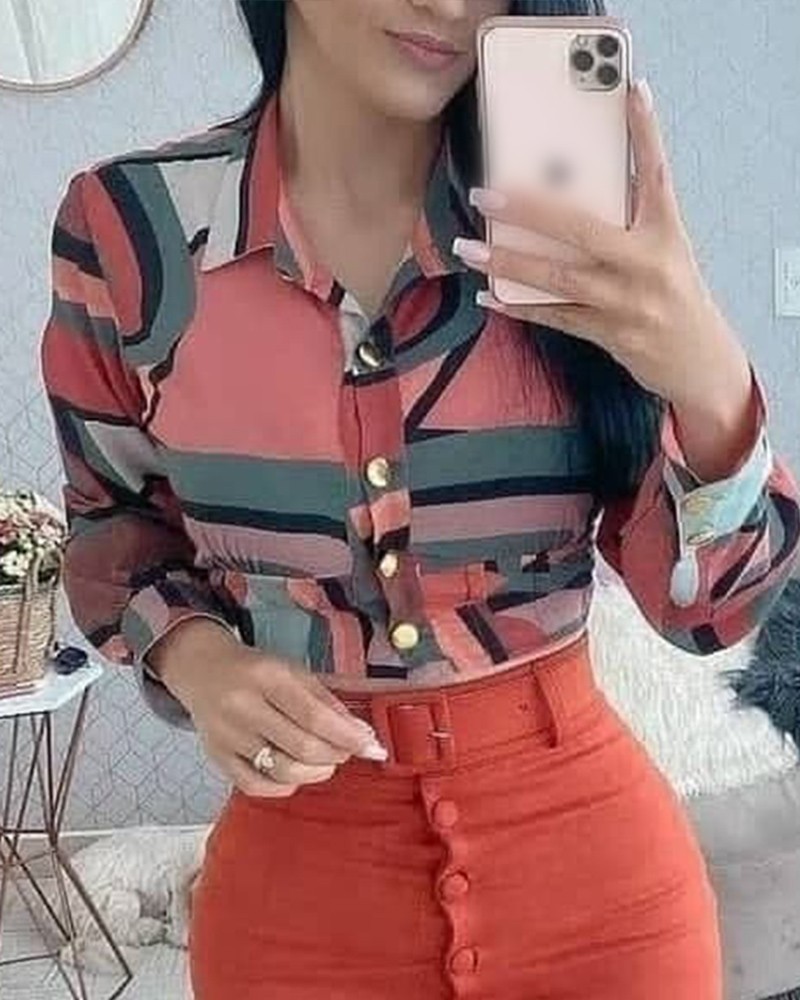 Casual Printed Long Sleeve High Waist Two Piece Suit
