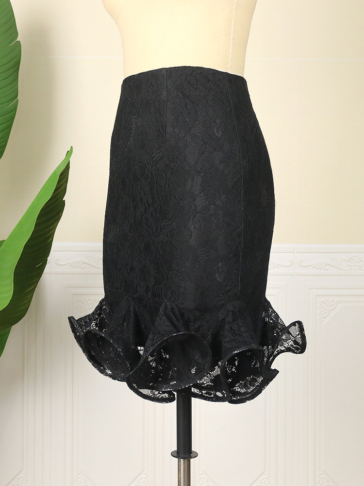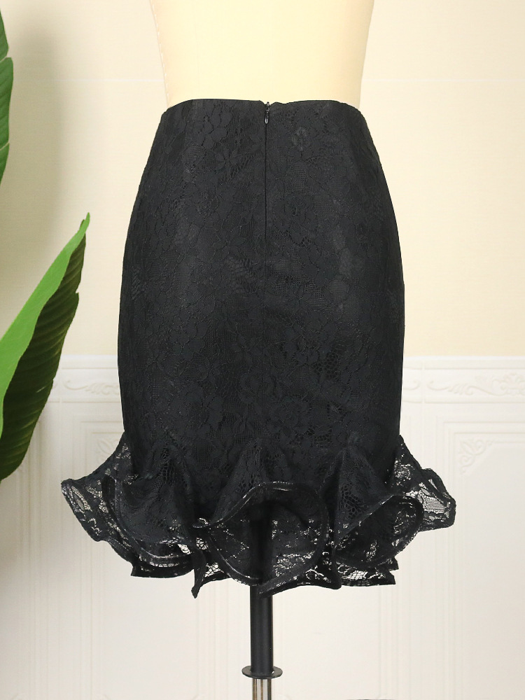 Sexy Lace High Waist Pack Hip Solid Color Large Size Women's Skirt