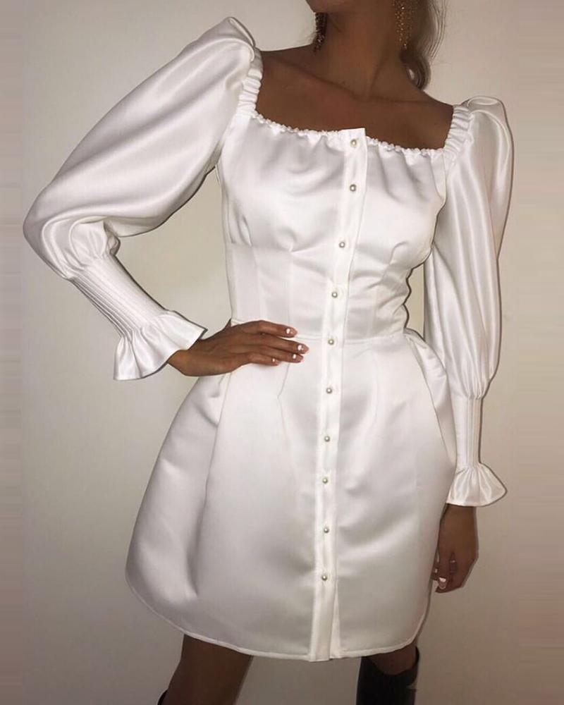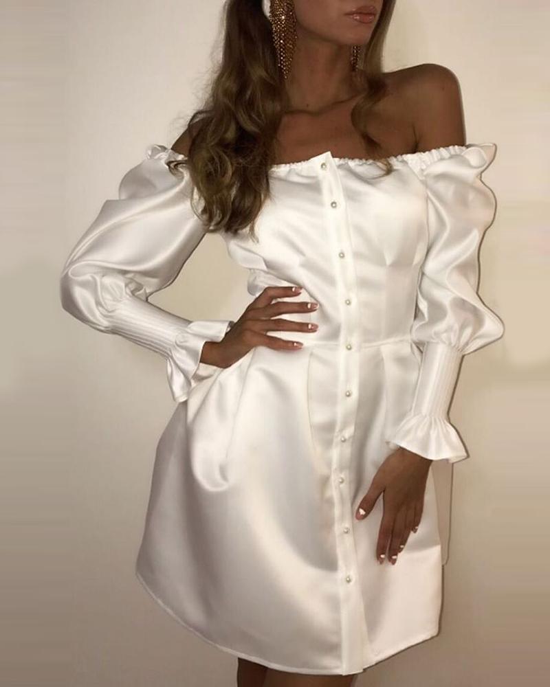 White Puff Sleeve Off-Shoulder Long Sleeve Dress