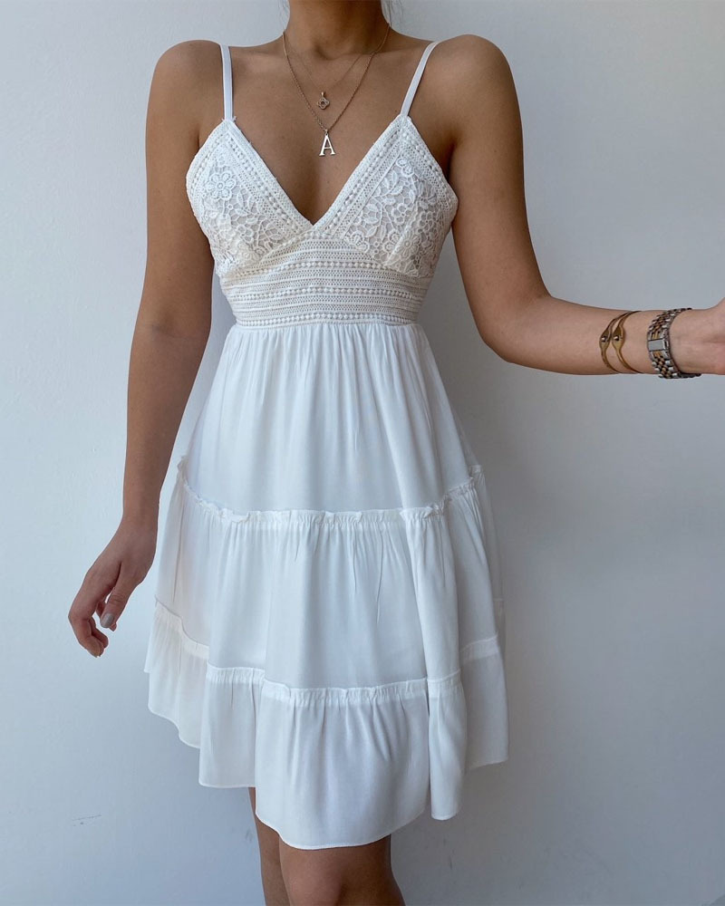 V-Neck Sling Sexy Sleeveless Lace Dress