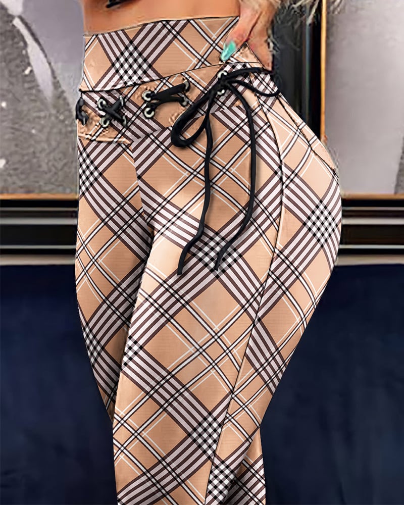 Casual Print Eyelet Skinny Pants
