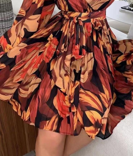 Deep V-Neck Women's Sexy Long Sleeve Dress