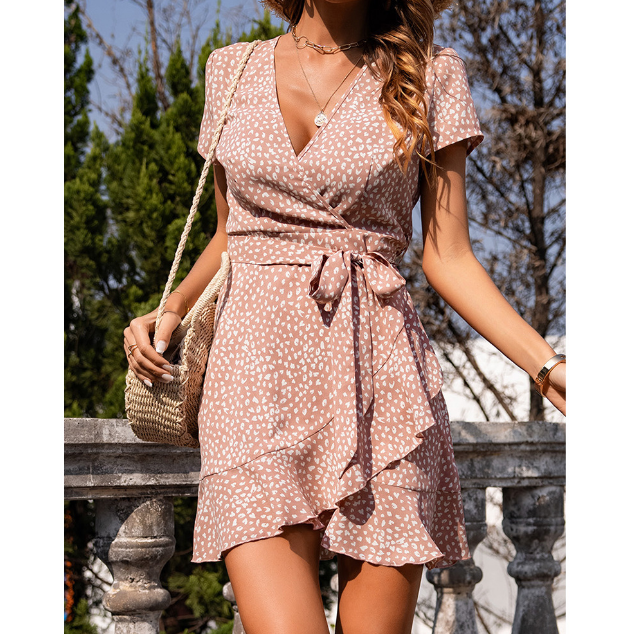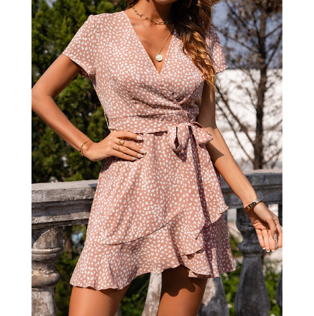 Fashion V-Neck Ruffled Chiffon Floral Dress