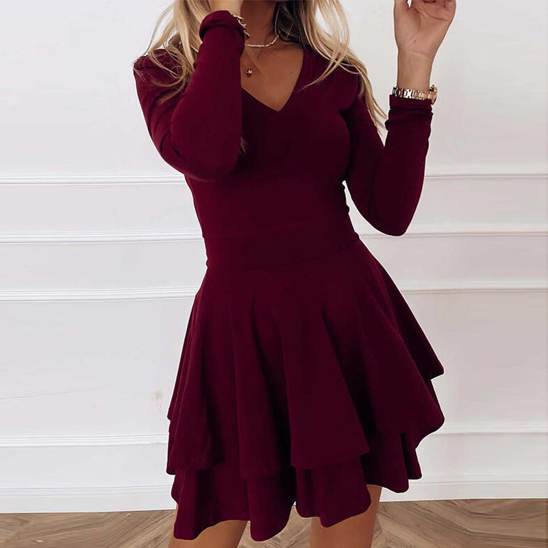 Women'S Fashion Solid Color Slim Long Sleeves Dress