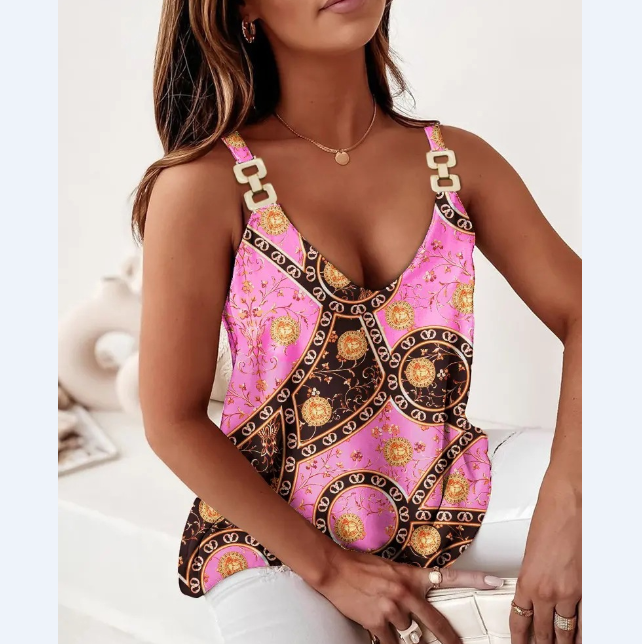 Sweet Sling Sleeveless Chain Print Vest Tops