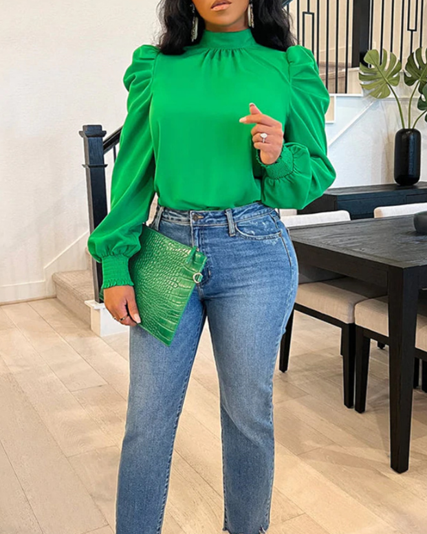 Design Women's Long Sleeve Puff Sleeve Shirt Top
