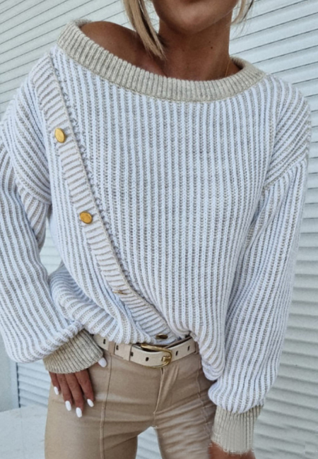 Casual Long Sleeve Splicing Stripe Knitted Sweater