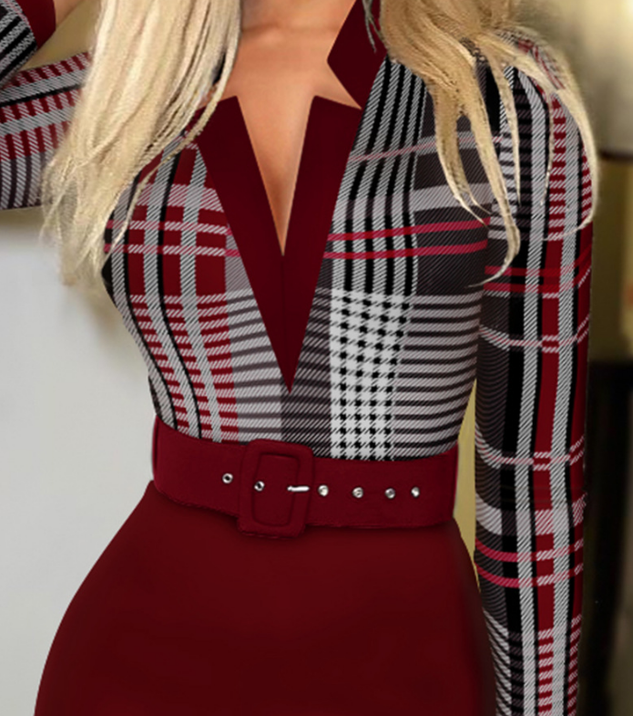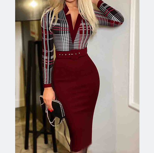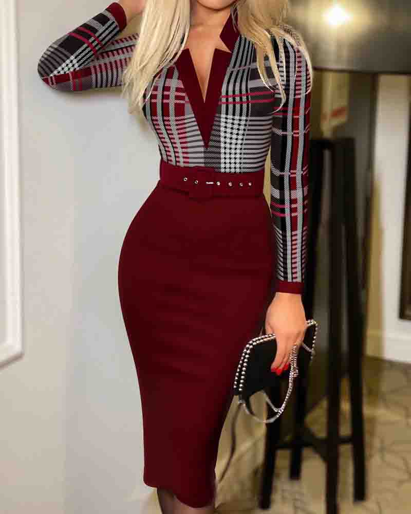 Women'S Fashion Plaid Slim Long Sleeve Dress