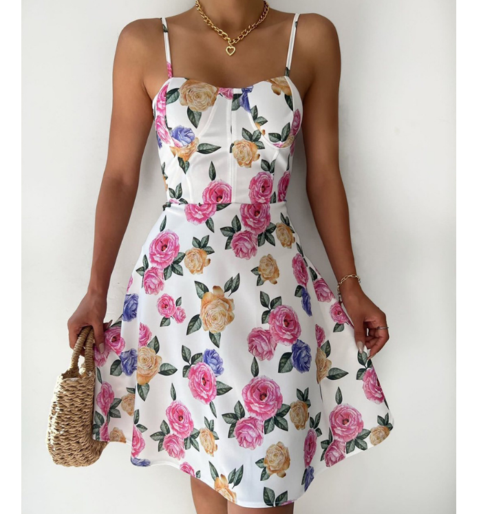 Women Sling Printed Sleeveless Dress