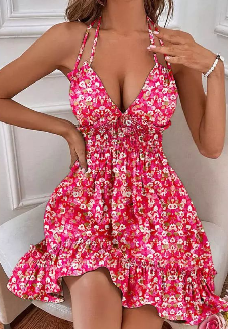 Sexy Fragmented Flowers Backless Sling Sleeveless Dress